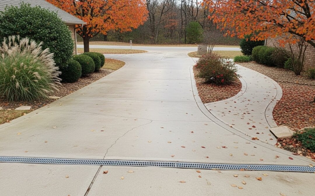 Proper drainage evaluation is fundamental. Pooling water accelerates winter damage more than any other factor. Adjusting slopes or installing drainage solutions helps direct water away from concrete surfaces.